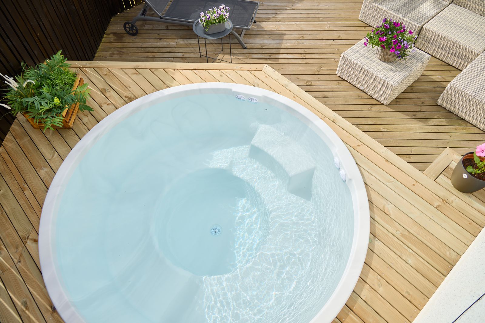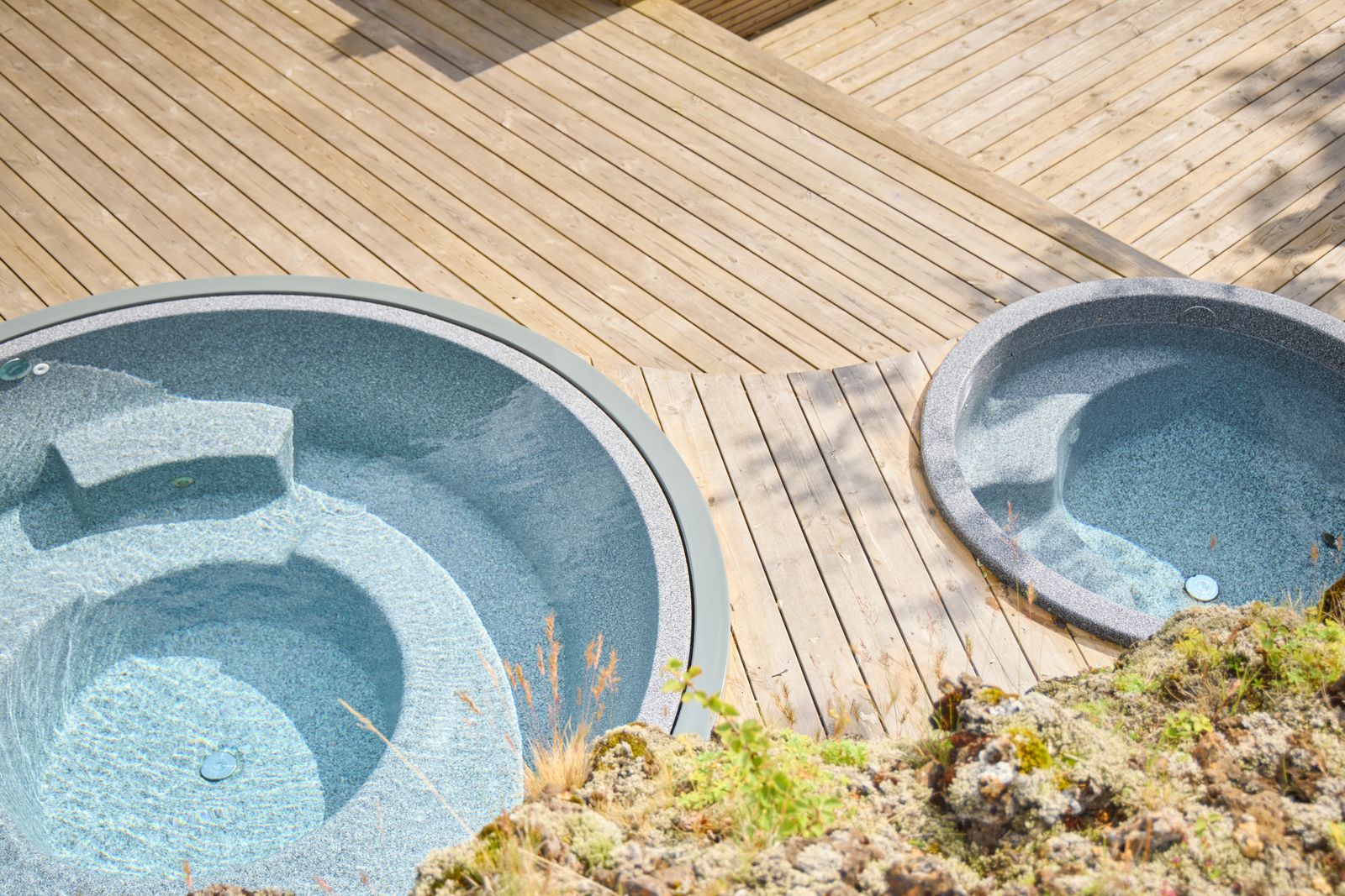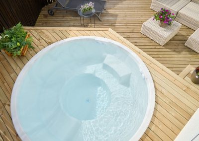 Yfirborð pottanna er úr hágæða akrýl – einstaklega sterku plastefni sem er fallegt í áferð og mjög auðvelt að þrífa. Akrýlið hrindir frá sér gróðri og óhreinindum, sem gerir það fullkomið fyrir heitar laugar í íslensku veðurfari.