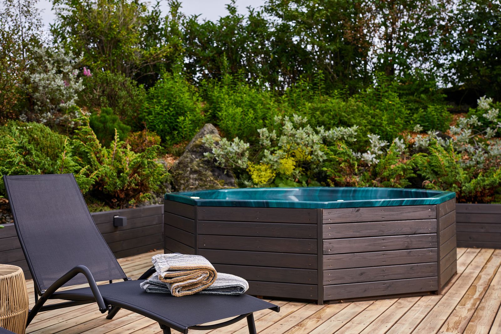 Undir yfirborðinu er sterkt lag úr trefjaplasti (fiberglass) sem gerir pottinn sjálfberandi. Því þarf ekki að smíða flókna burðargrind, og potturinn heldur lögun sinni ár eftir ár – jafnvel í miklum hita- og kuldasveiflum.